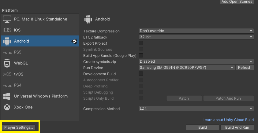 Build Setting 에서 Build 를 클릭하여 이름을 정하고 빌드하면 apk 파일이 만들어 진다.