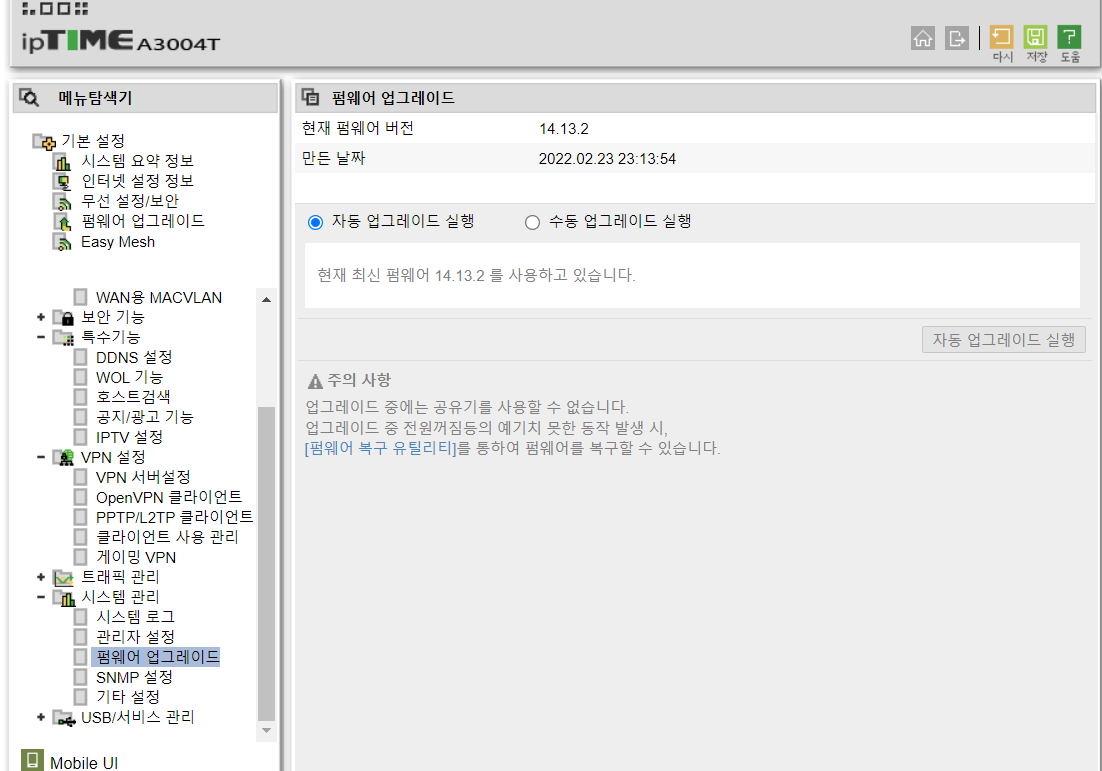 혹시나 하는 마음에 공유이 펌웨어 업데이트를 했다.