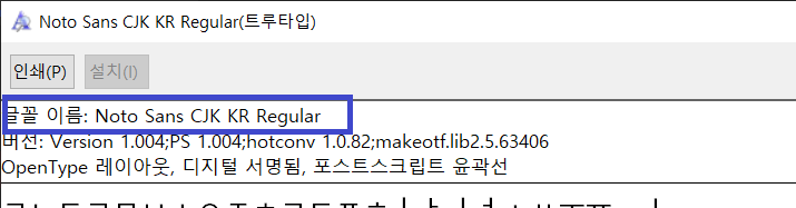 그런데 아래처럼 간혹 글꼴이름이 한글로 나올때가 있는데