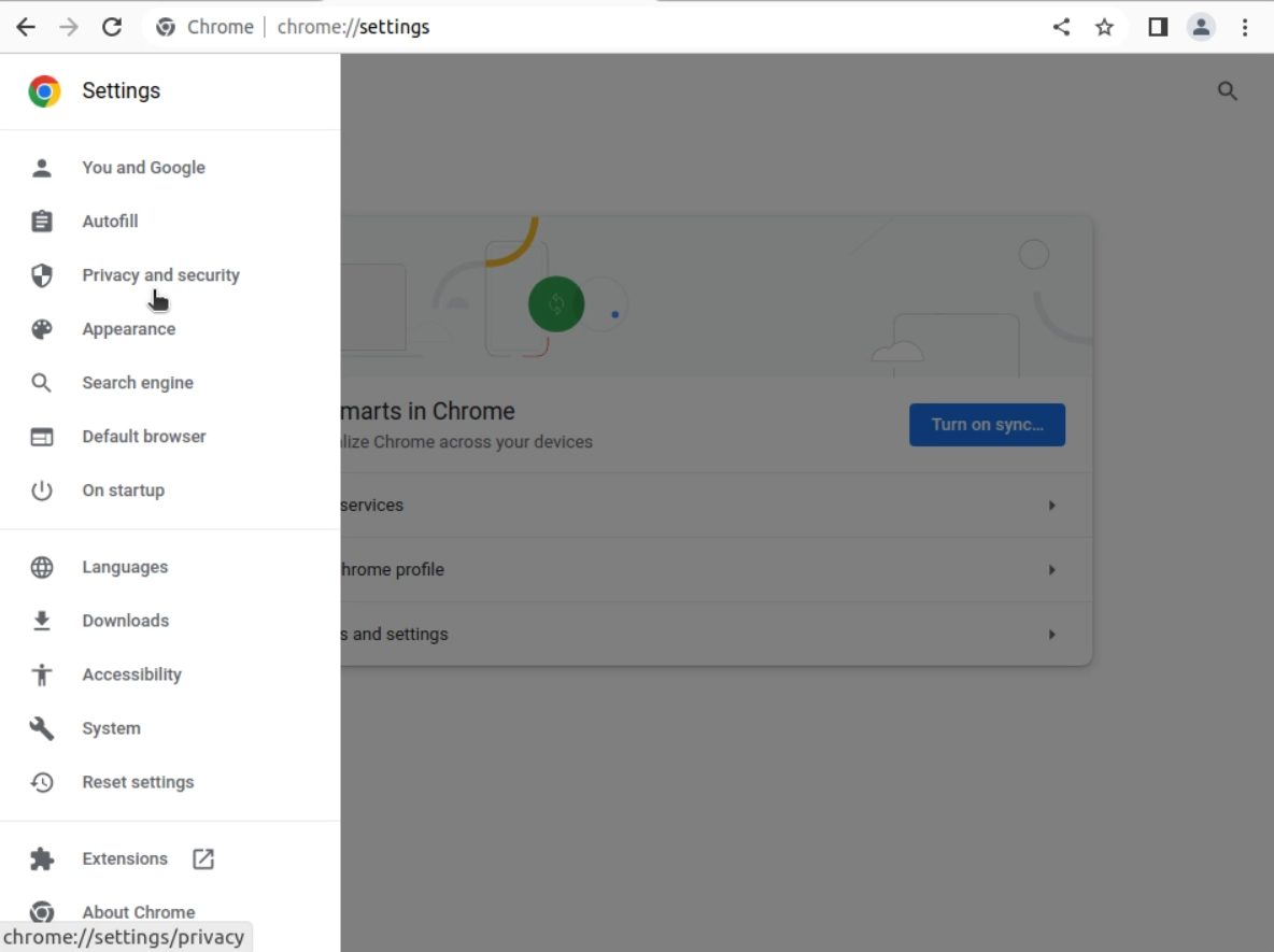햄버그 메뉴를 클릭하여 Privacy and security 선택