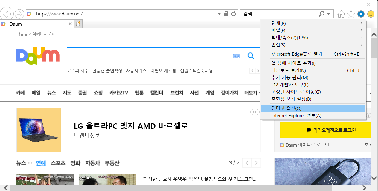 Internet Explorer 에서 cer 파일 다운받을 사이트로 이동