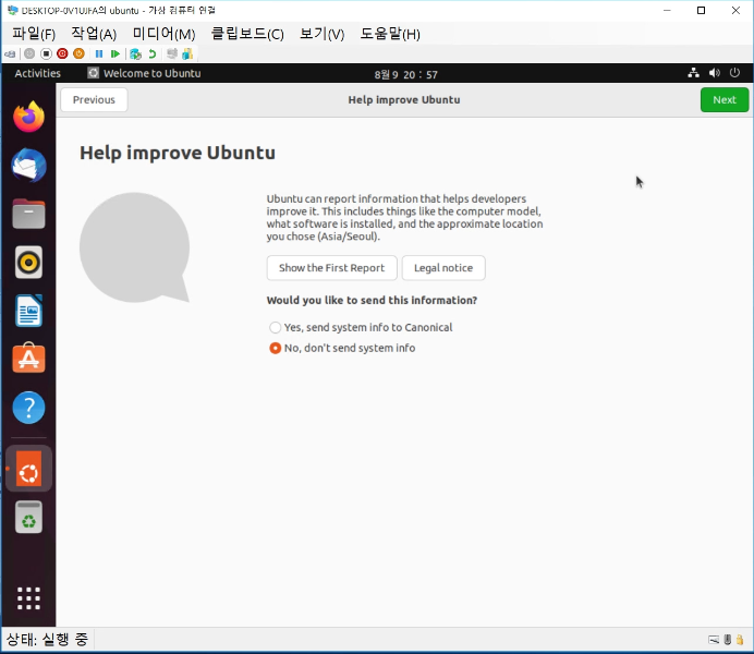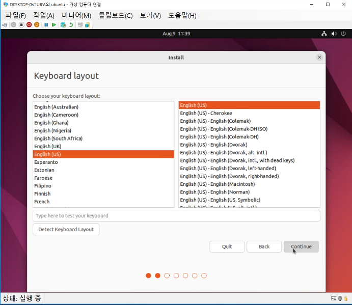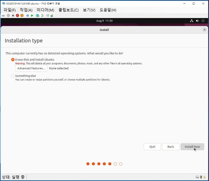 이제 가상 컴퓨터를 더블 클릭하고 시작하여 구동하여 ubuntu 설치를 진행한다.