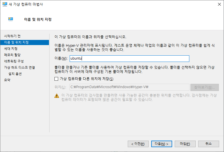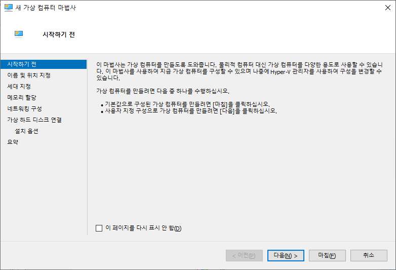 가상컴퓨터 이름 지정 하고 다음
