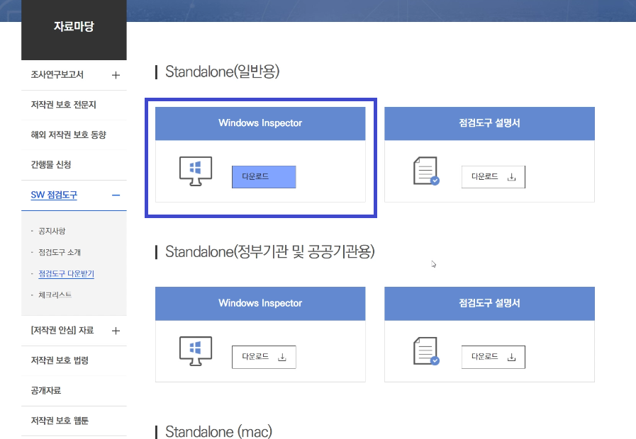 홈 >자료마당>SW 점검도구>점검도구 다운받기