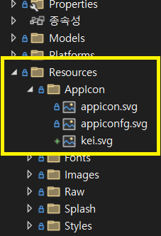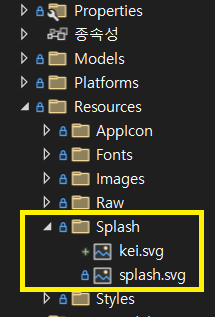 Resources > Splash 에 사용할 이미지를 추가합니다. (kei.svg)