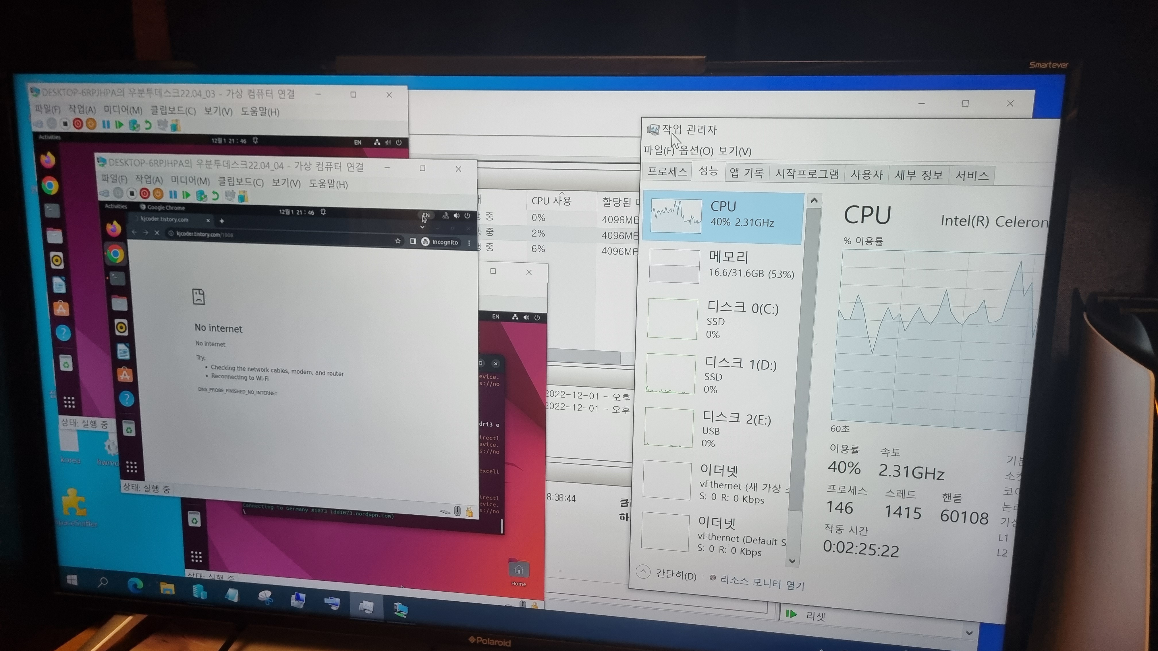 VM 3대 켰을 때 작업 관리자