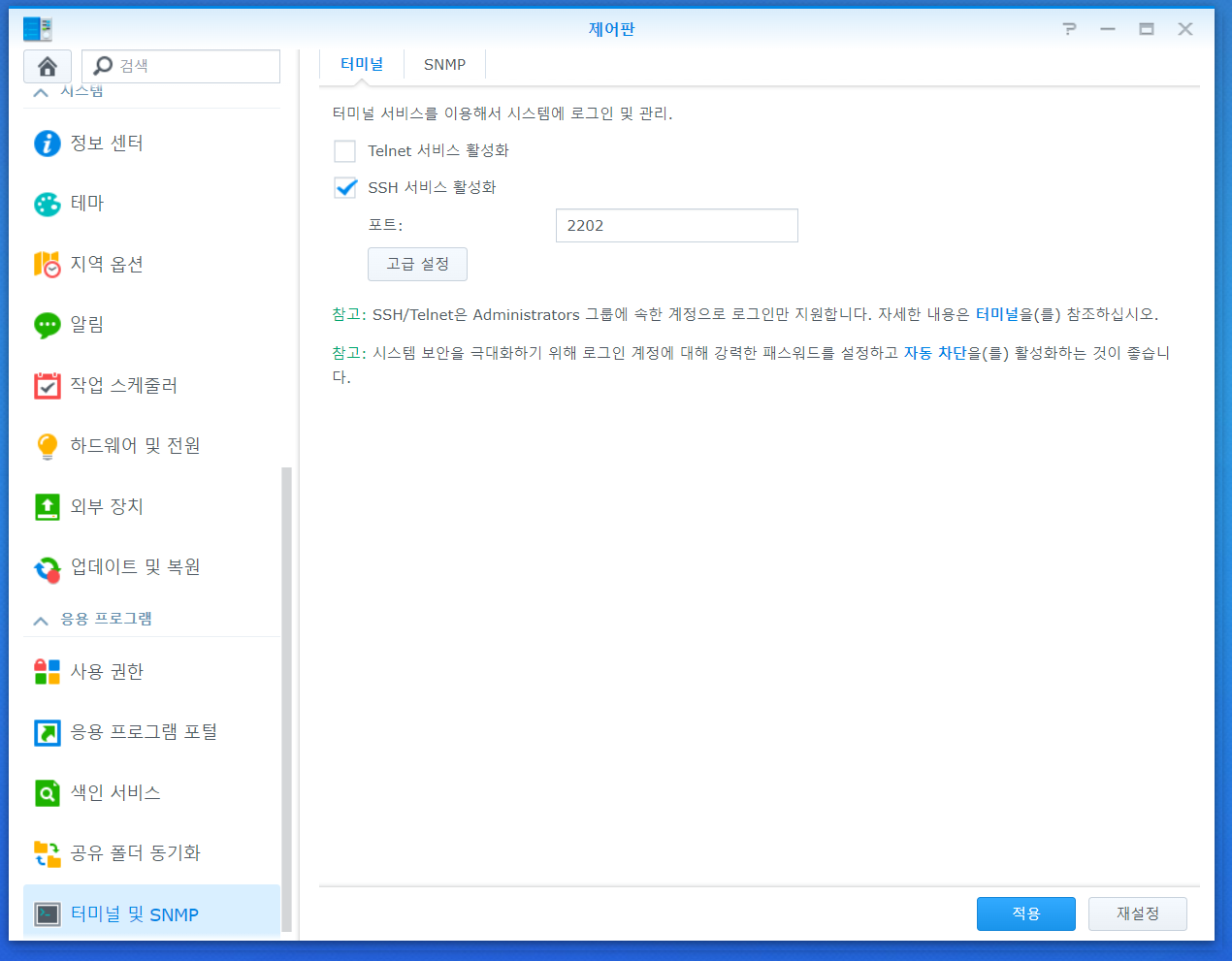 Synology SSH 서비스 활성화 하는 방법입니다.