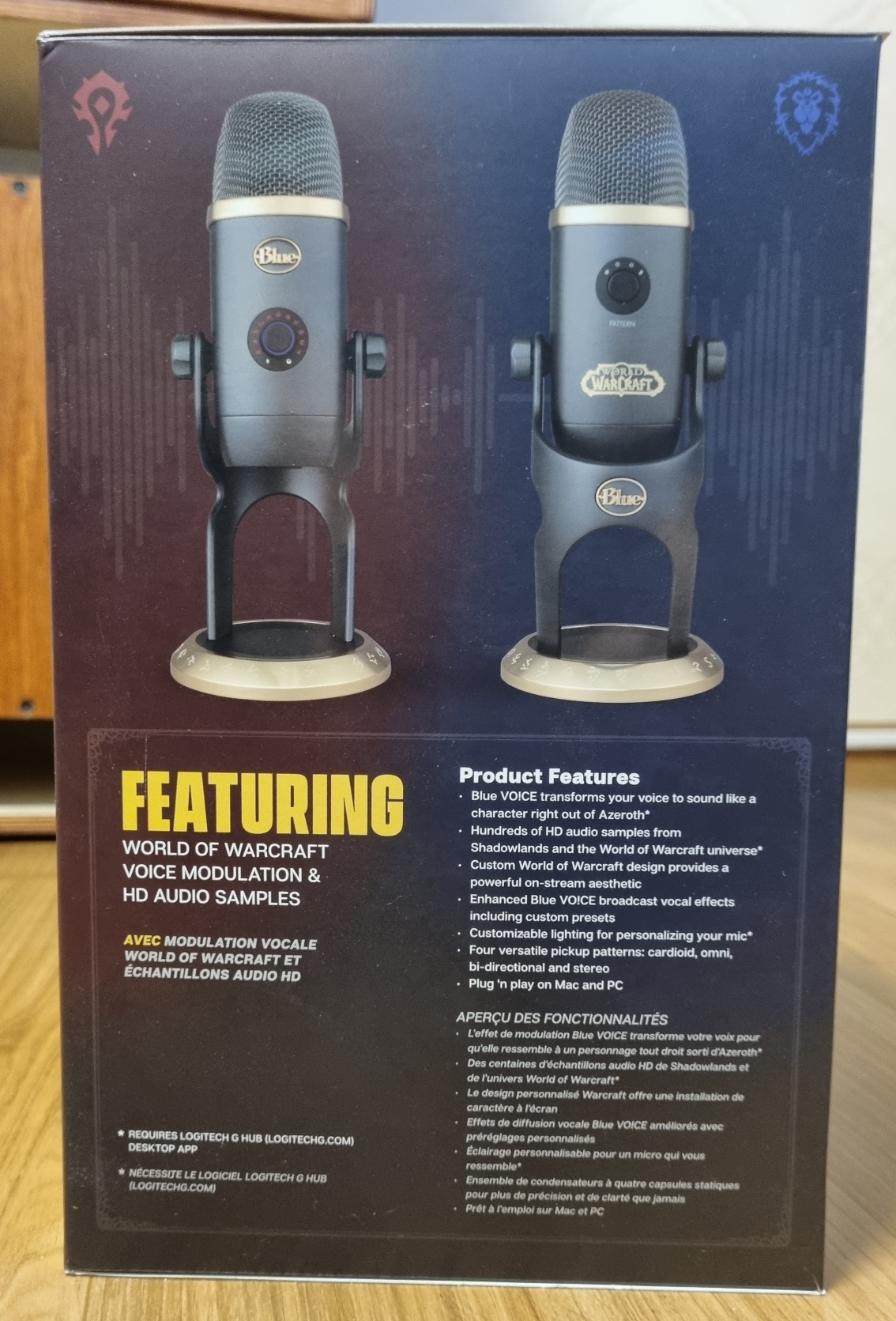 워크래프트 버전이라서 컴퓨터랑 연결하면 워크래프트 캐릭터들로 목소리 변조도 할 수 있습니다