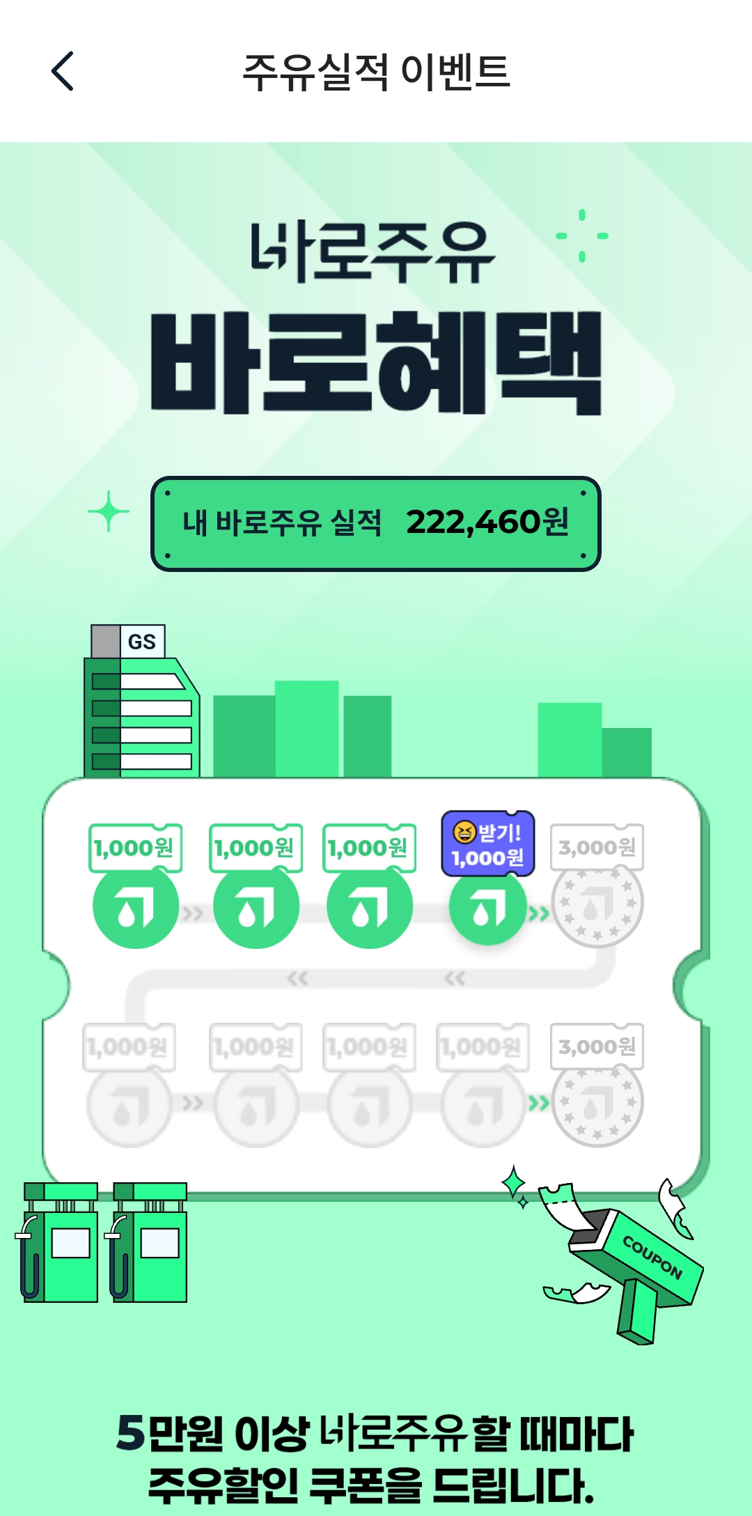 아래 실적 이벤트에서 누적주유금액이 넘어갈 때마다 할인쿠폰도 줍니다