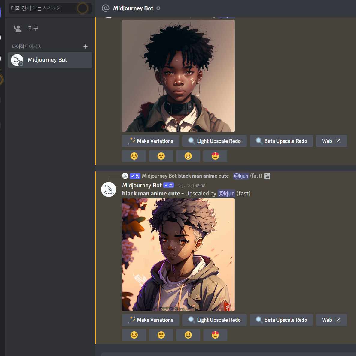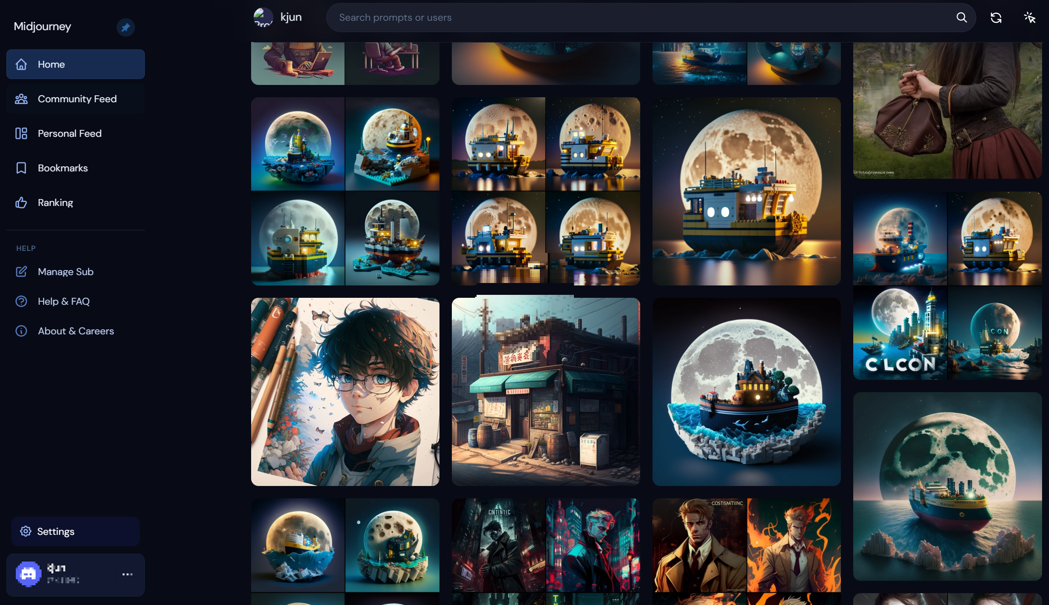 Midjourney 사이트에 Discord로 로그인하면 지금까지 만들었던 이미지들을 모아 볼 수 있습니다.