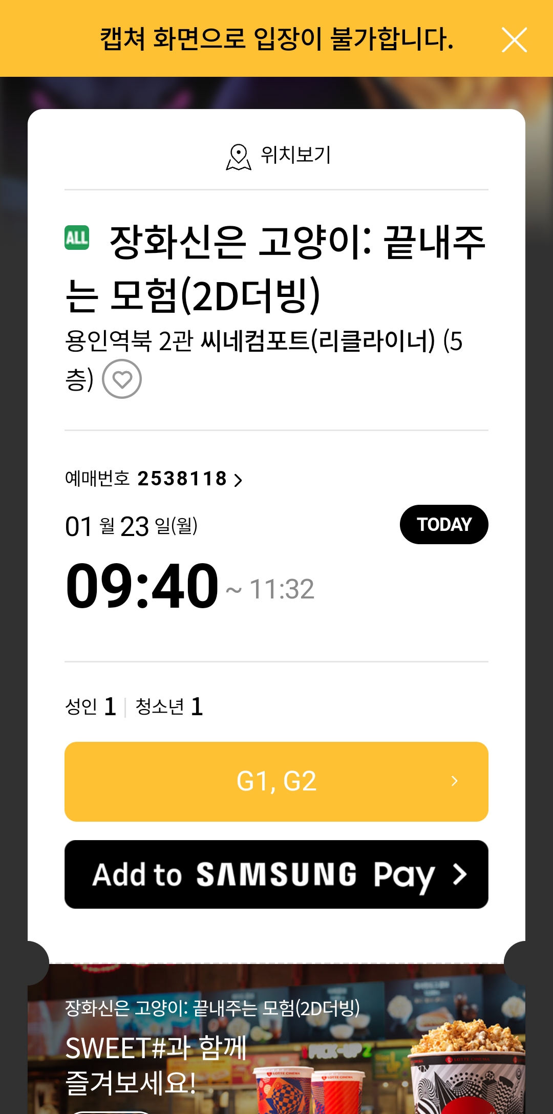 아들과 함께 장화 신은 고양이를 관람했다