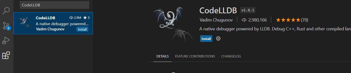 4. 디버깅을 위해 CodeLLDB 도 설치합니다.