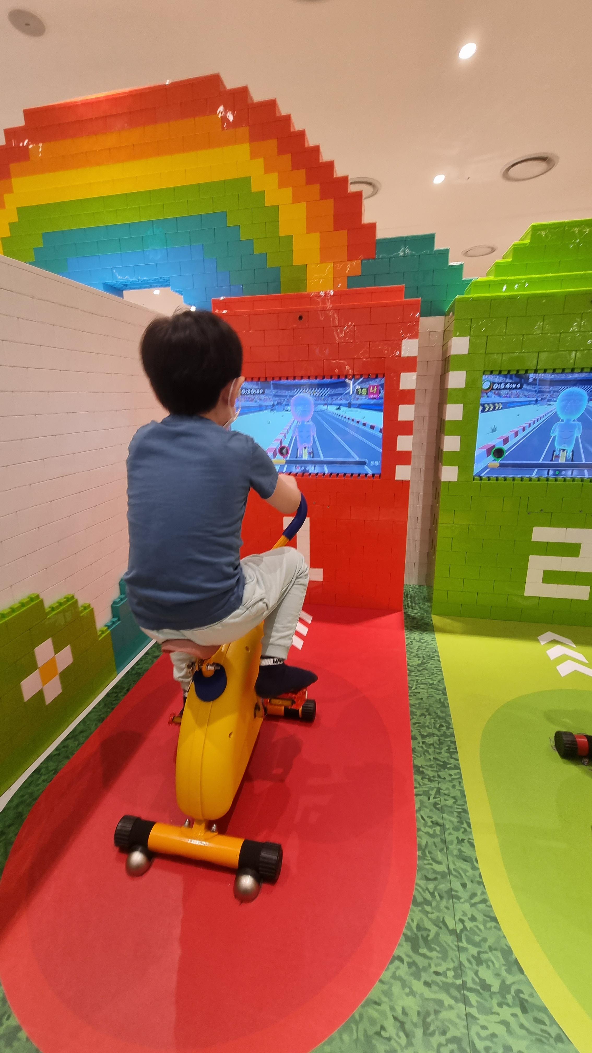 볼을 던지는 게임, 버튼 누르는 게임, 핸들조작하는 게임도 있어 시간 가는 줄 몰랐다