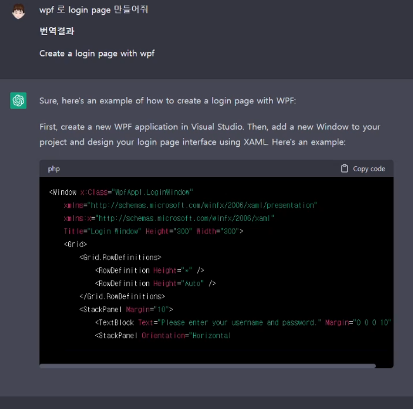 응답을 빠르게 받을 수 있고 영어로 응답받은 내용을 자동으로 한글로 번역해 줍니다.