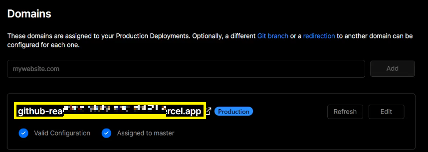 Add Domain을 클릭하면 아래와 같이 주소가 나오는데 이를 복사합니다.
