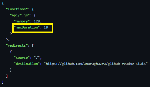 Fork 한 후 vercel.json 의 maxDuration 값을 확인하여 10 인지 확인하고 아니면 10으로 수정합니다.