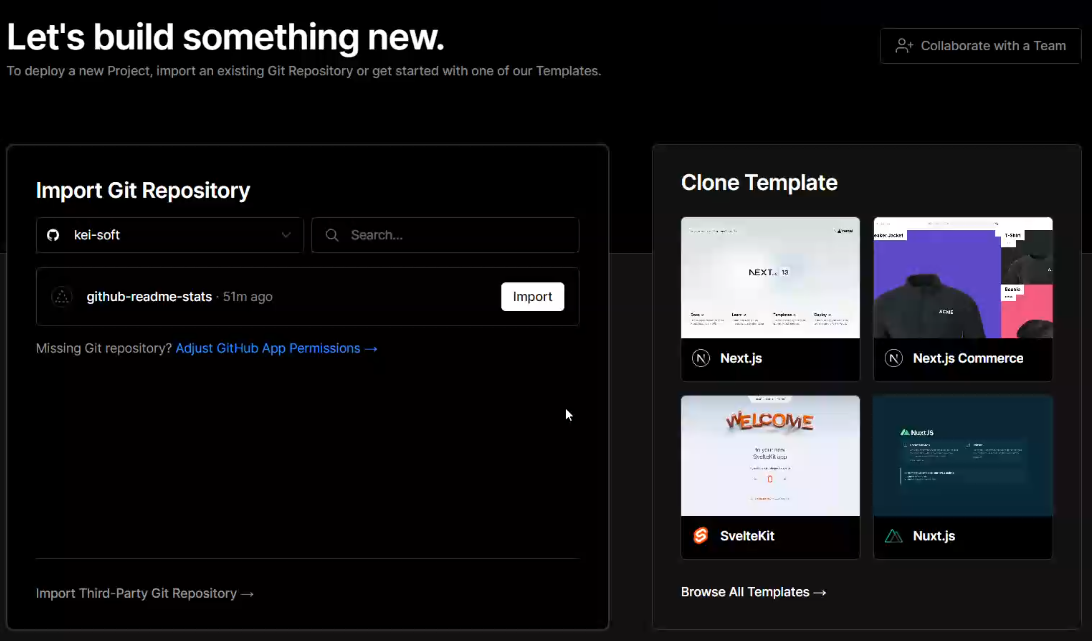확인해 보니 요청수가 너무 많아서 발생되는 에러로 해당 Repository를 Fork 해서 본인의 Vercel에 배포하면 해결된다고 해서 방법을 알아보았습니다.