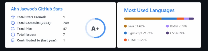 readme stats를 이용하여 정보를 표시하고 있었는데 아래처럼 오류가 발생되었습니다.