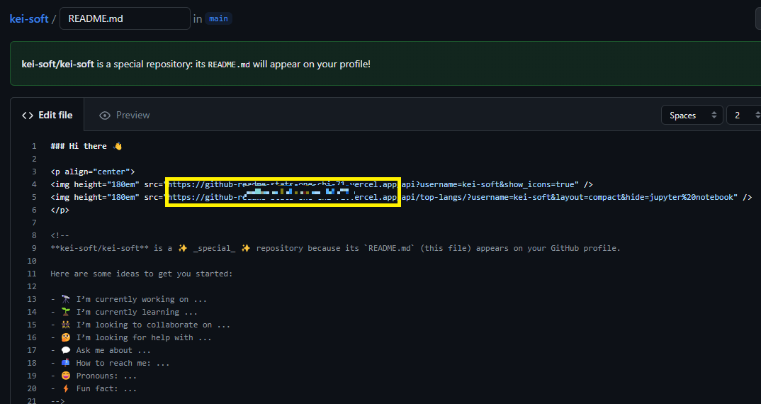 이제 이 주소를 가지고 readme 파일에 있는 주소를 변경해 주면 됩니다.