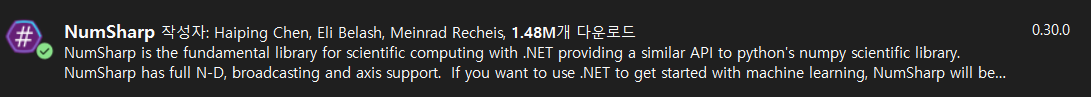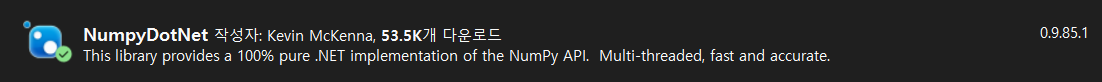 기능도 동일하게 동작하는거 같습니다. (NumSharp 가 오래되서 그런지 다운로드 수가 높긴합니다.)
