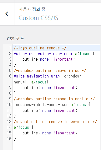 wordpress에서 oceanWP 테마를 사용하는데 아래처럼 링크를 클릭하면 outline 이 생기게 됩니다