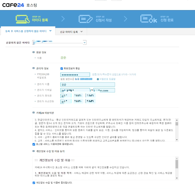 Cafe24에서 매니지드 워드프레스를 신청했습니다.
