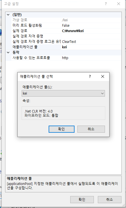 IIS 에서 애플리케이션 풀을 하나 추가하고