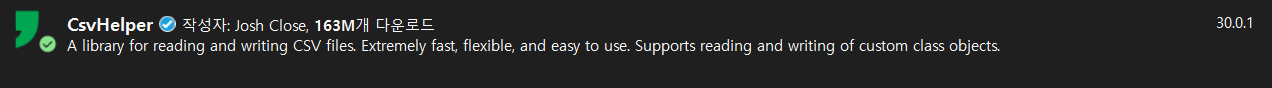 1. 'CsvHelper' Nuget 패키지 설치