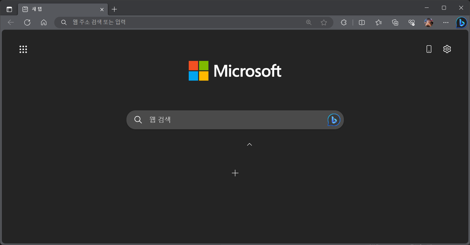 이제 Edge 를 열어도 새탭을 추가해도 뉴스 피드 없는 깔끔한 초기화면을 볼수 있습니다.