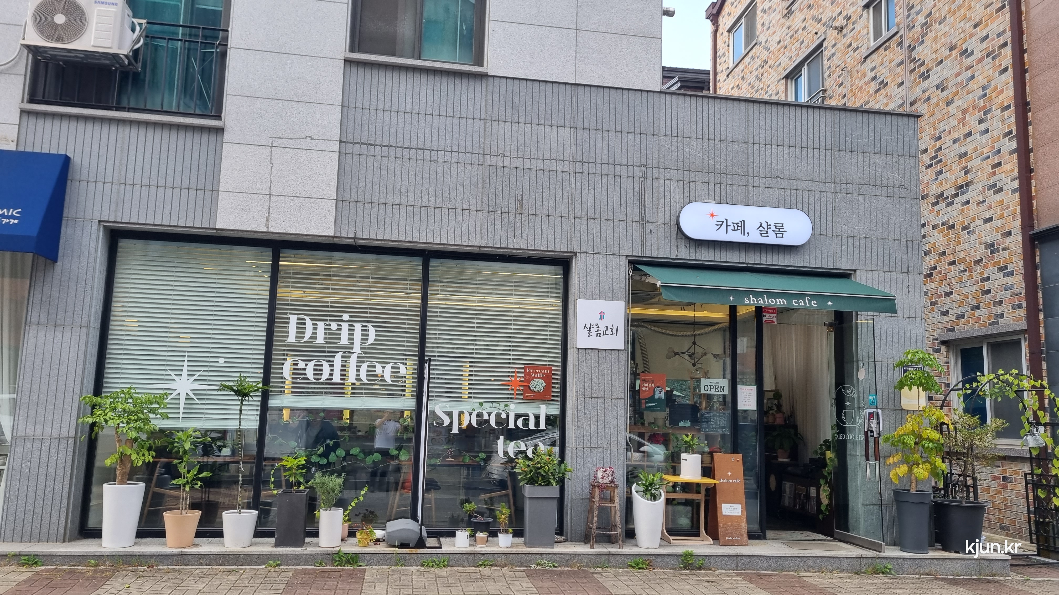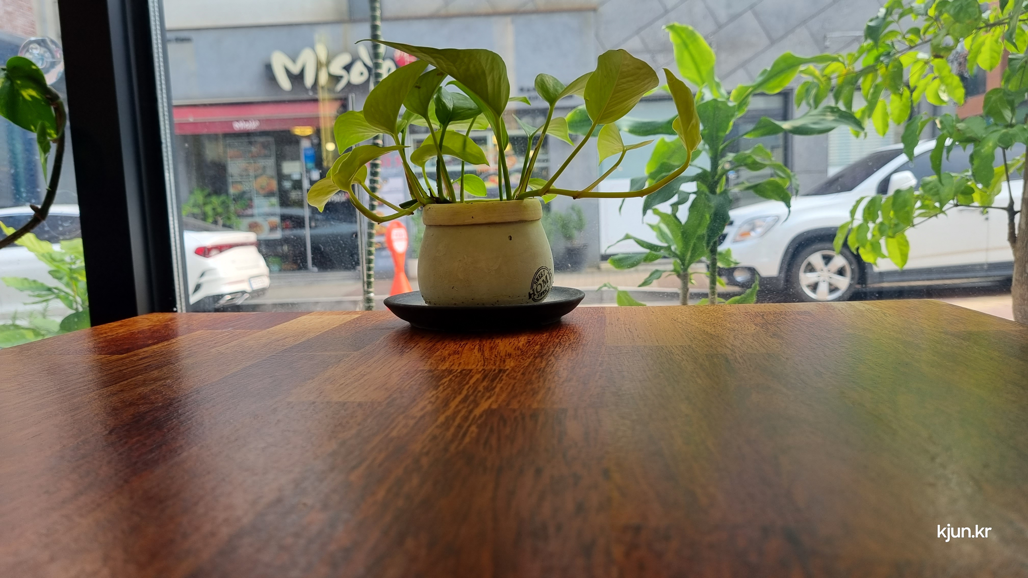 카페 앞으로 화분들이 잘 놓여있는데 관리를 잘하셔서 회분들이 다 싱싱하다