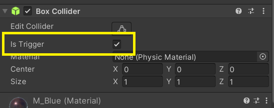 충돌한 object 를 삭제하기 위해서는 충돌한 object의 Collider 의 Is Trigger 체크박스를 체크해야합니다.