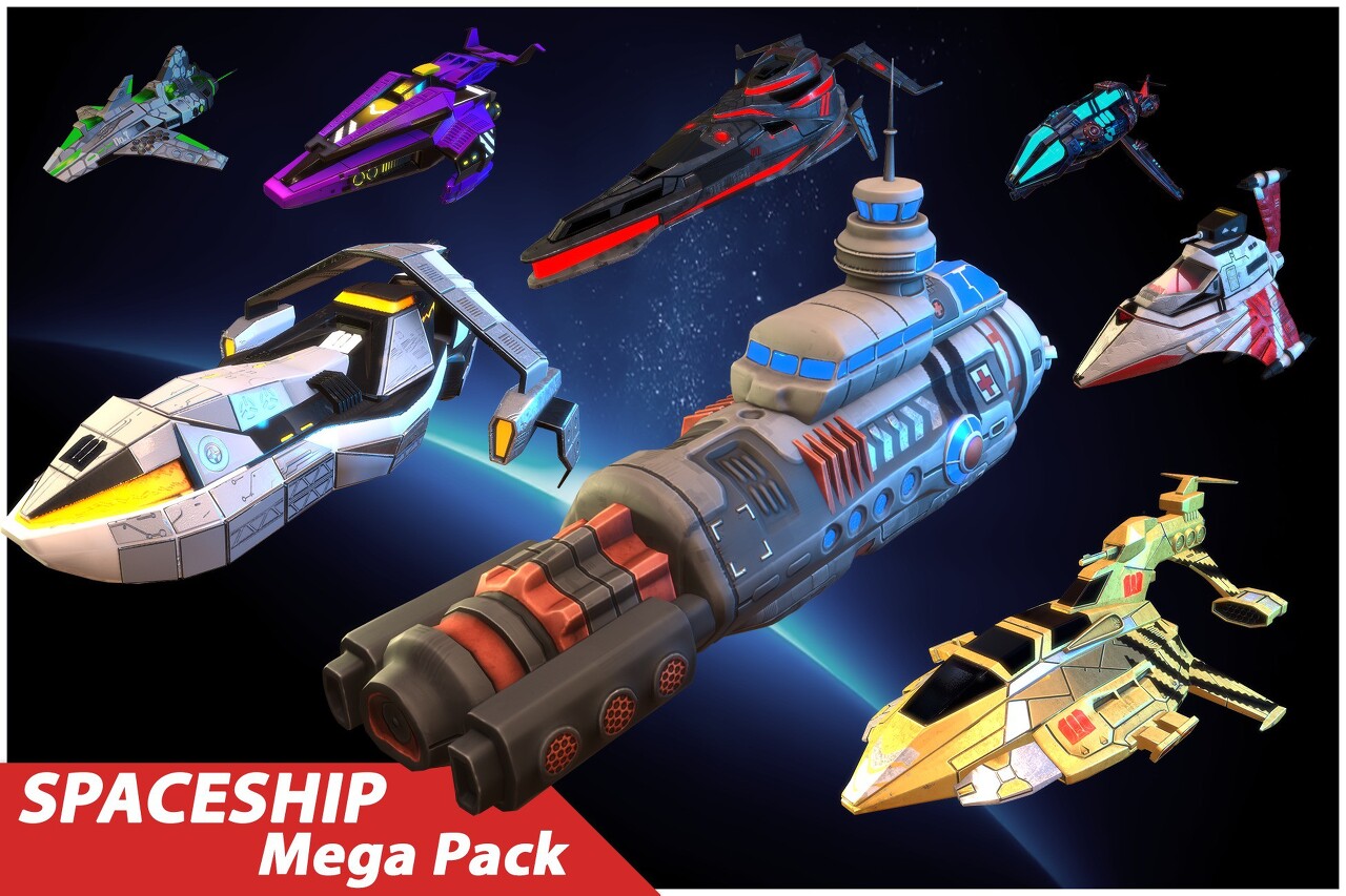 https://assetstore.unity.com/packages/3d/vehicles/space/stylized-spaceships-mega-pack-208708