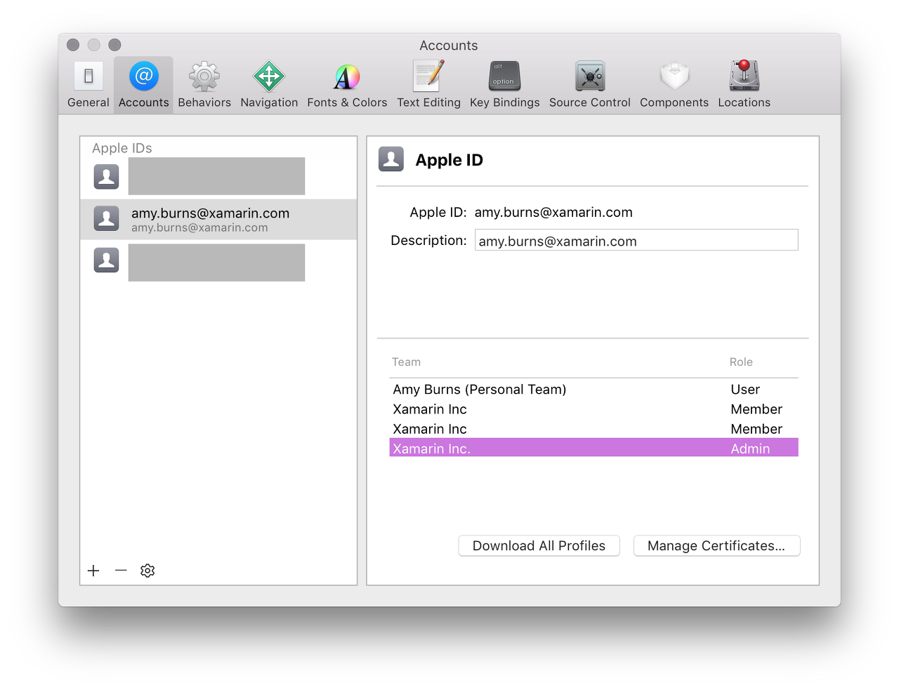 Visual Studio에서 새 배포 프로필을 사용하려면, 먼저 Visual Studio를 종료한 다음, 서명 ID 요청 섹션의 지침에 따라 빌드 호스트의 Mac에 있는 Xcode에서 사용 가능한 서명 ID 및 프로비전 프로필의 목록을 새로 고쳐야 할 수도 있습니다.