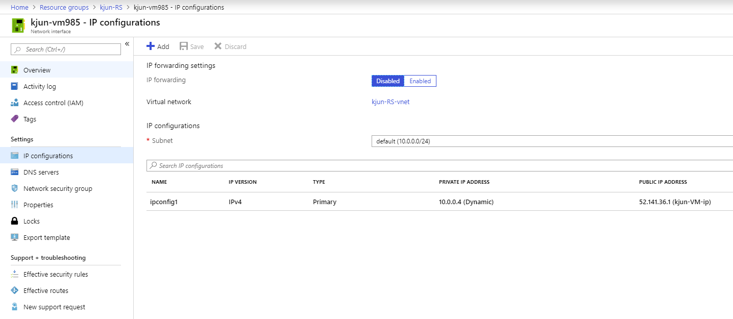 kjun-VM-ip 를 선택하면 아래와 같이 화면이 나오는데 여기서 Configuration 을 선택하고