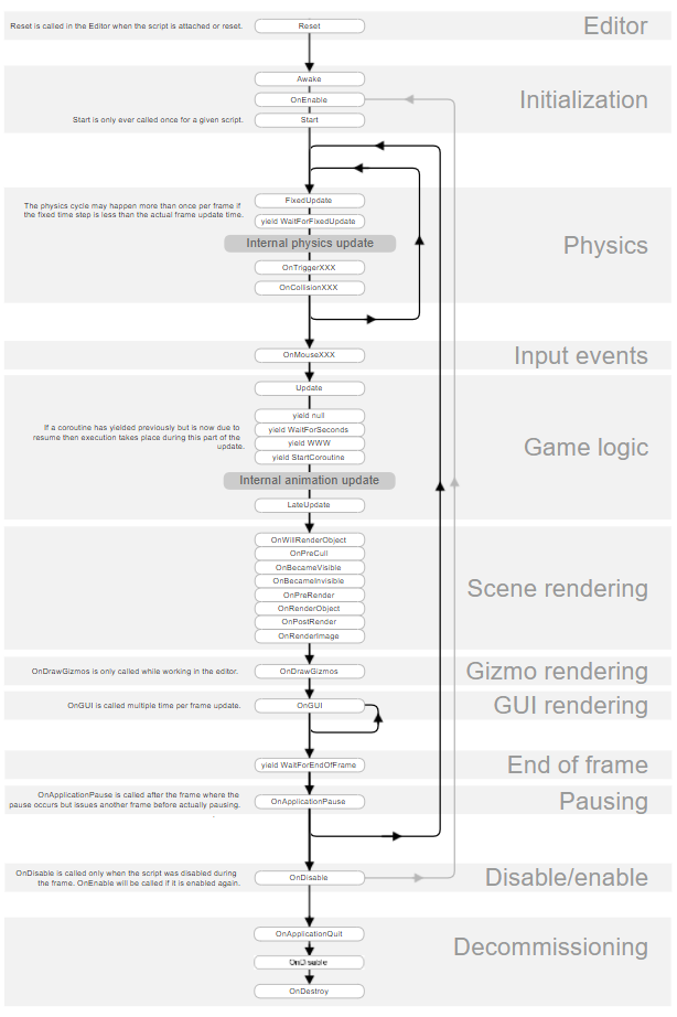 물리 효과가 적용되지 않은 오브젝트의 움직임이나 단순한 타이머, 키 입력을 받을 때 사용된다.