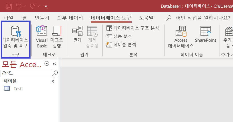 Access 에서 아래 버튼을 누르면 로그등의 내용이 제거되면서 CompactDatabase 가 수행되는데