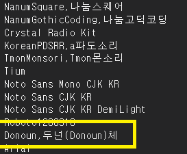 그런데 아래처럼 간혹 글꼴이름이 한글로 나올때가 있는데