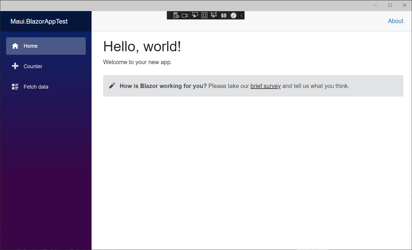 .NET MAUI Blozor 앱을 선택하고 프로젝트를 만들면 아래처럼 샘플앱이 만들어진다.