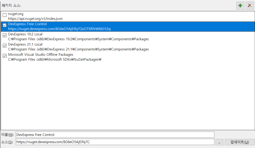패키지 관리자 설정 에서 패키지 소스탭으로 이동해