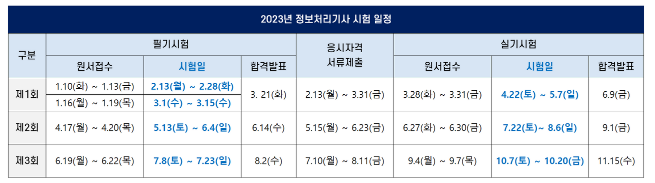2023 정보처리기사 시험 일정