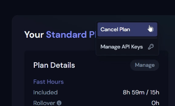 아래와 같이 버튼 위로 Cancel Plan을 선택할 수 있게 됩니다.