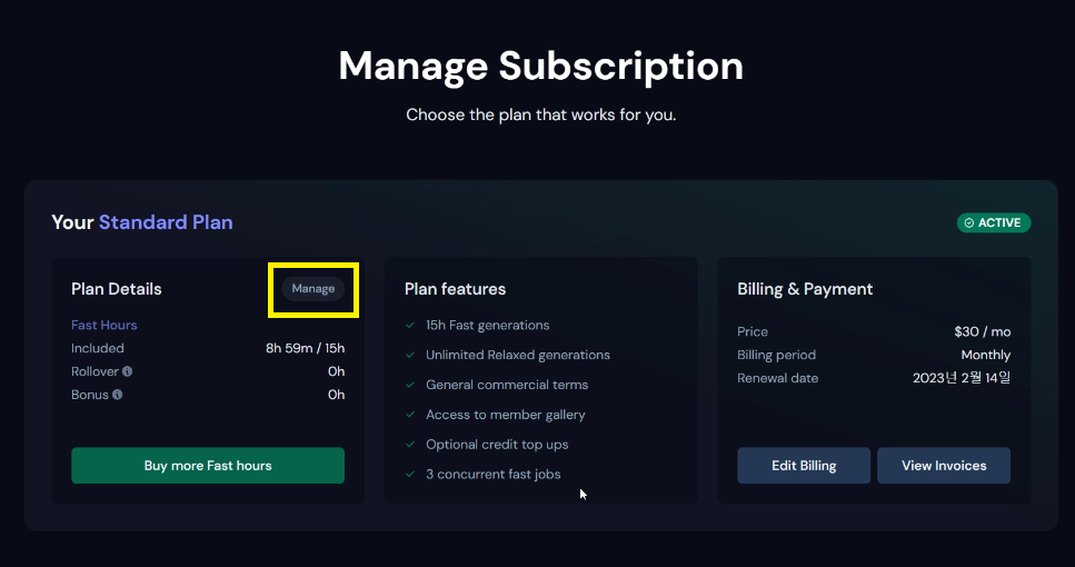 Midjourney 구독 취소하기