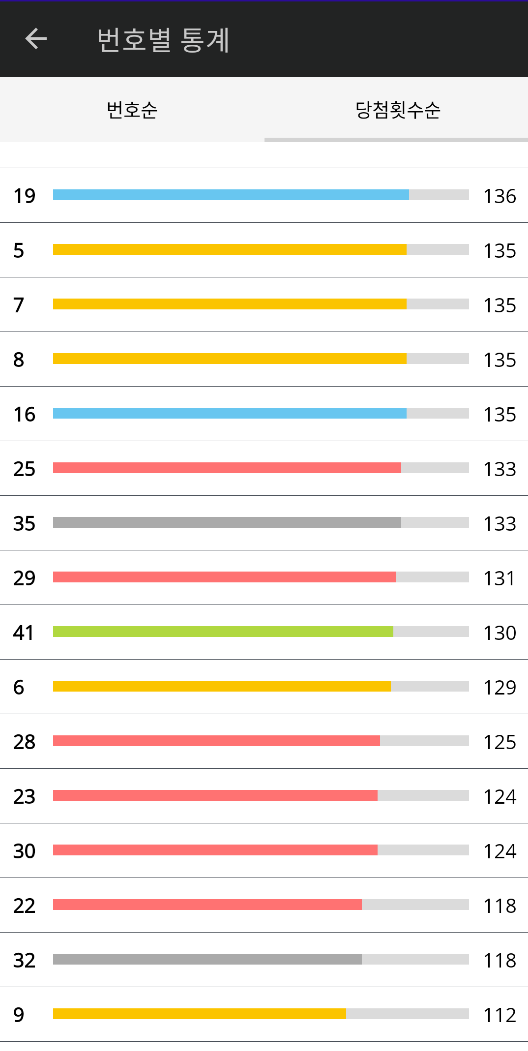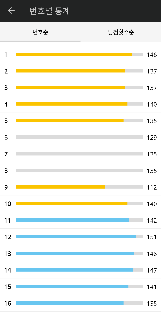당첨 데이터 기준 번호별 당첨 통계화면 구성