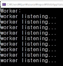 (1초 간격으로 worker listening... 를 화면에 뿌려주고 Publish 가 되면 received 메세지를 출력합니다.)