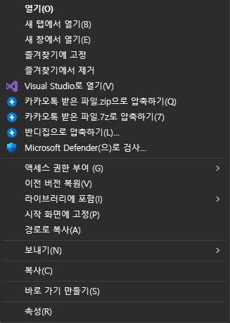 Windows11 에서 우클릭 메뉴 Windows10 스타일로 보기
