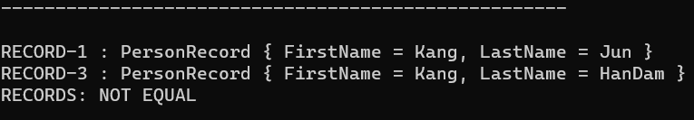 var firstRecord = new PersonRecord("Kang", "Jun");