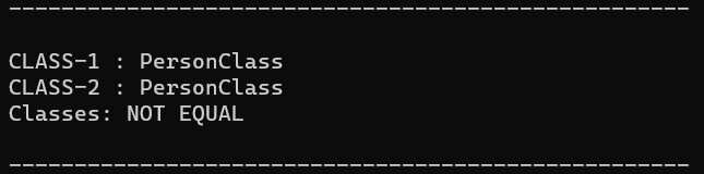 var classComparison = firstObj == secondObj ? "EQUAL" : "NOT EQUAL";
