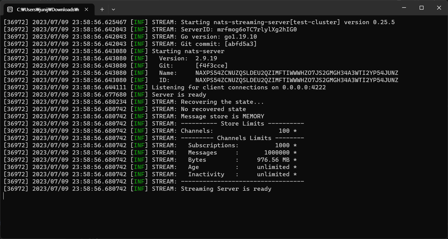 아래 사이트로 가서 nats-streaming-server.exe 파일을 다운받아 실행합니다.