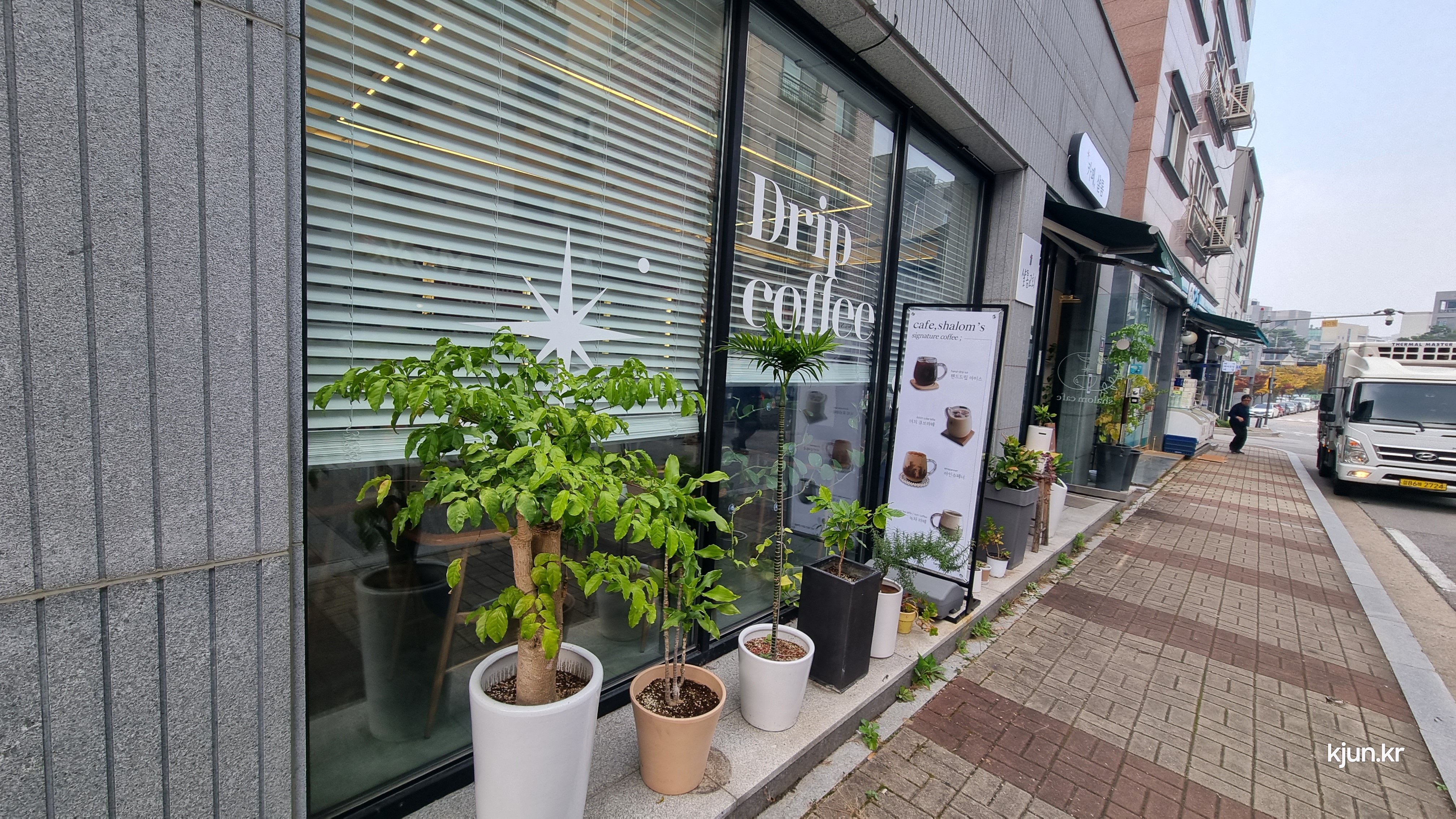 카페 앞으로 화분들이 잘 놓여있는데 관리를 잘하셔서 회분들이 다 싱싱하다