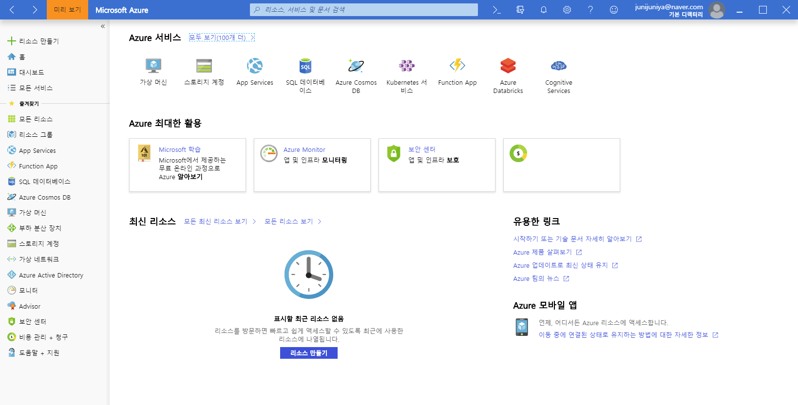 Azure Portal 이 Application 으로 나왔다